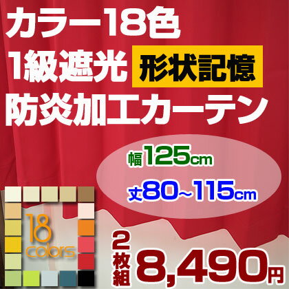 【形状記憶加工タイプ】1級遮光&防炎加工ドレープカーテン「レイナ」◆幅125cm×2枚組◆丈80-115cmまで5cm刻み18色から選べる 形状記憶 色 サイズ 豊富 洗濯可 ウォッシャブル 一人暮らし・リビング・子供部屋におすすめ!シンプルナチュラルテイスト!
