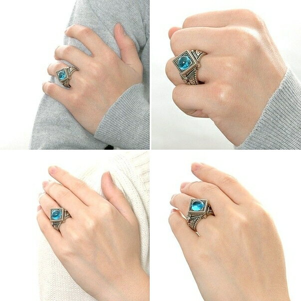 指先にクールな色気を生み出す色鮮やかなブルートパーズ&ガーネットのシルバーペアリングです。